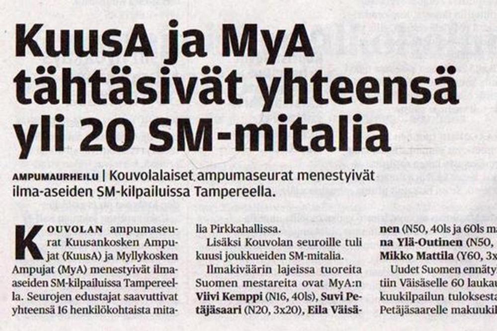 50m kivääri SM M ja N sarjat, 31.7.-2.8. Tyrrissä